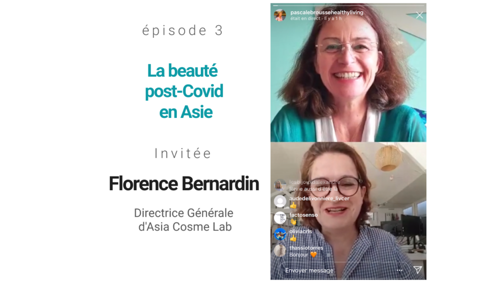 Voir cette publication sur Instagram Entretien avec Florence Bernardin, Directrice Générale d’Asia Cosme Lab sur le thème de la beauté post-Covid en Asie Une publication partagée par Pascale Brousse (@pascalebroussehealthyliving) le 28 Mai 2020 à 7 :06 PDT